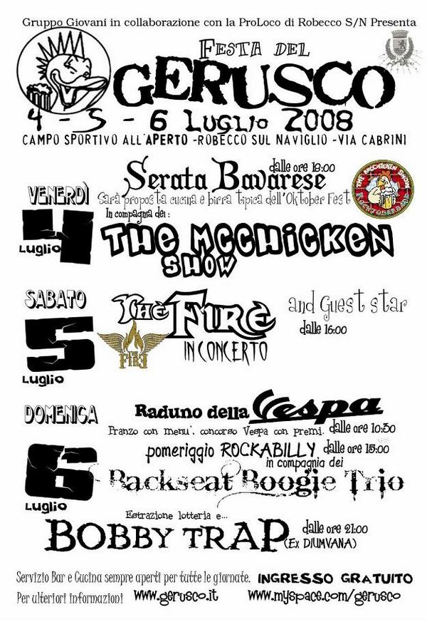 | 04-07-2008 | Festa del Gerusco - Robecco Sul Naviglio (MI) | Guarda la locandina |